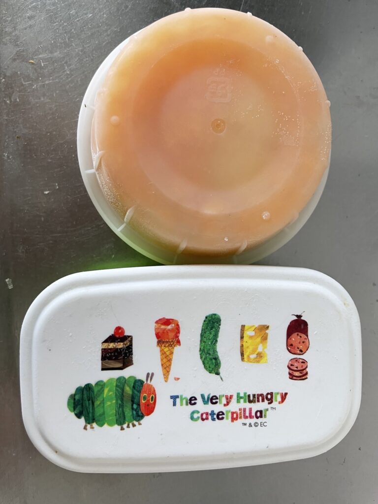 缶詰めのフルーツを汁ごと容器にいれて、冷凍させただけですが、大喜び♡