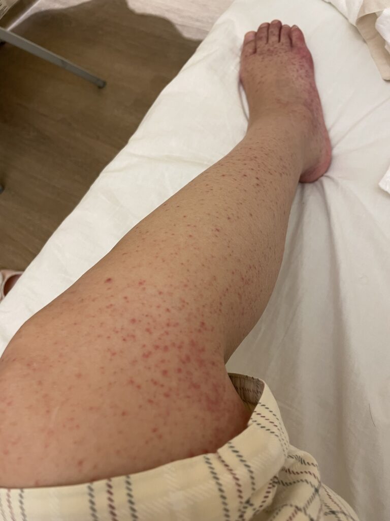 ↓最初は手足に赤い点々ができるだけだったが、ここから、全身やけどのような状態に