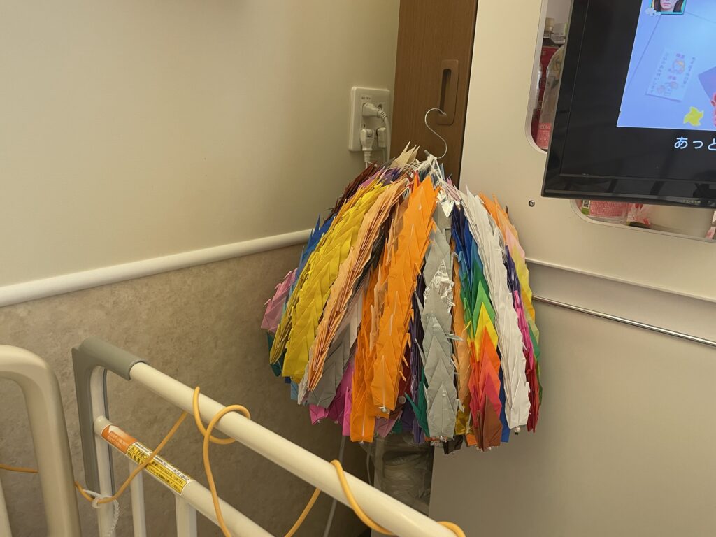 ↓家族と保育園の先生やお友達が作ってくれた、千羽鶴。